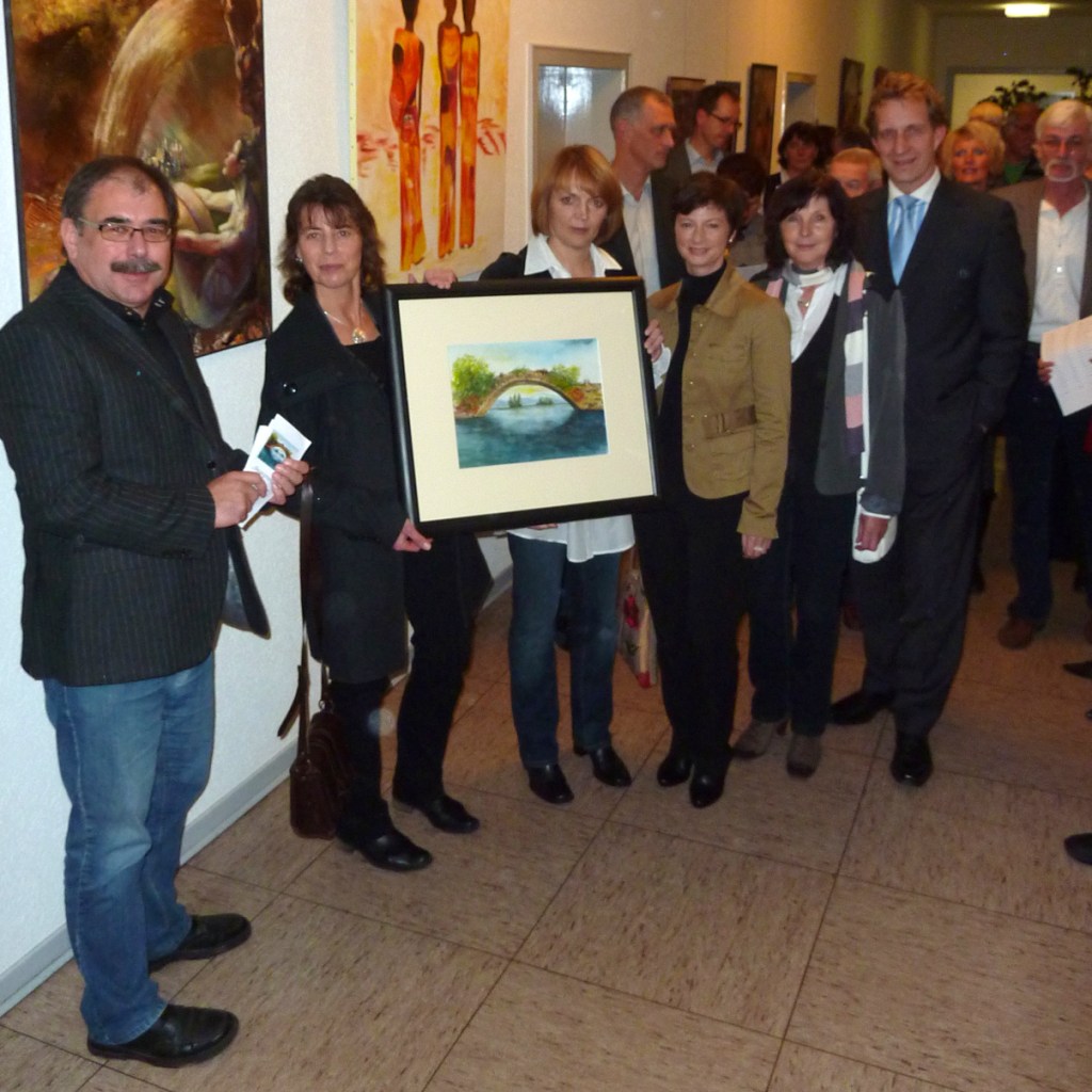 Geschenke: so hatten die Vinoliens ein Bild der Künstlerin Sylvie Jouzeau mit Motiven der Loire-Gegend sowie eine kostbare Schale von der berühmten Porzellanmanufaktur aus Nevers mitgebracht.